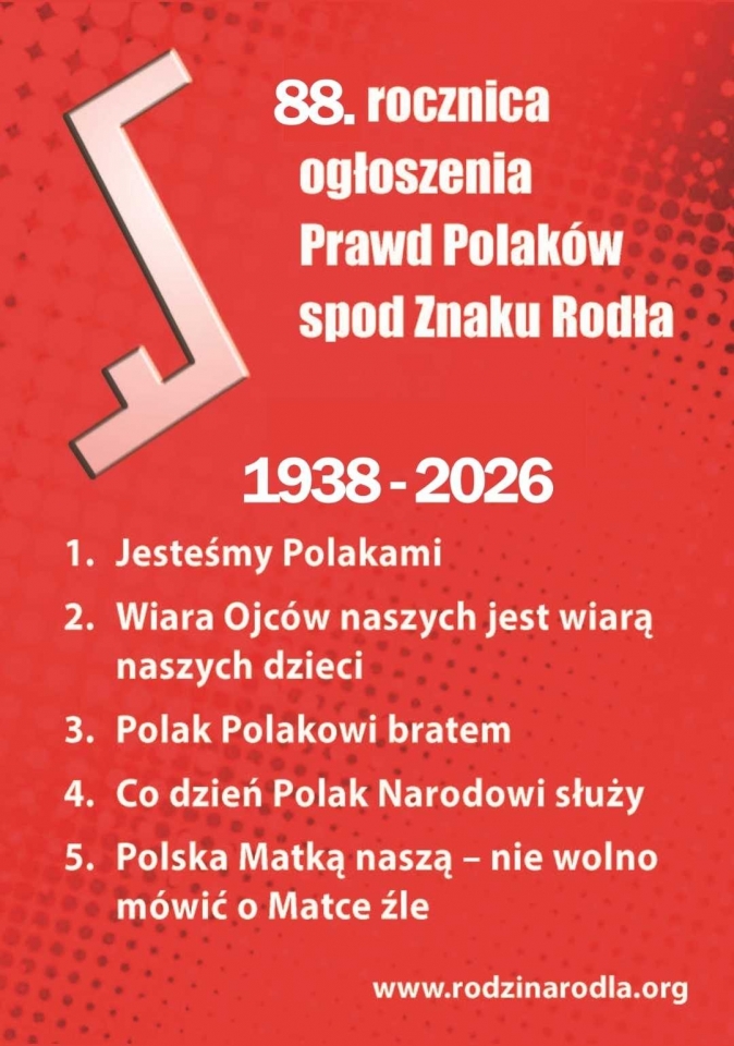 Fundacja Rodzina Rodła zaprasza na obchody 88. rocznicy ogłoszenia Prawd Polaków spod Znaku Rodła. Mszy św. w katedrze we Wrocławiu w niedzielę 8 marca. o godz. 10.00 będzie przewodniczył bp Ignacy Dec.